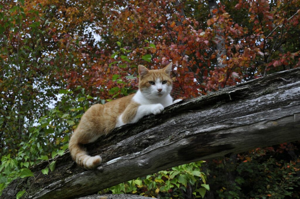 Dans ces forêts, trois générations de minous m’ont accompagné partout. J’étais enfant unique, donc la compagnie était appréciée. Même si je recevais fréquement de minuscules cadavres en cadeau, ça m’a pris plusieurs années avant de réaliser que ces félins que j’aimais tant nettoyaient les bois du chant des oiseaux, mais ça c’est une histoire pour un autre tantôt.